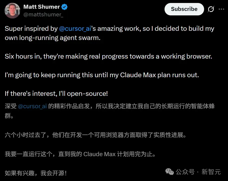 HyperWriteAI的CEO Matt Shumer也在复现过程中发现,只要运行框架和能力支持到位,明确分工的AI智能体集群确实能产生实质性进展。
