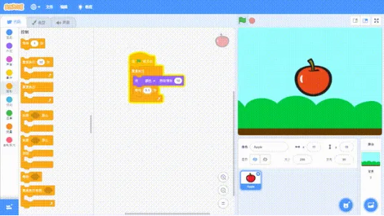 通过老师指导,小学一年级的孩子都可以照着例子完整的摆出一个能运行的程序。在学习scratch的过程中,孩子不仅在愉快的环境下通过实验学习到程序设计、数学知识和计算知识,同时也获得创造性的思考,系统推理和协作工作的体验。
