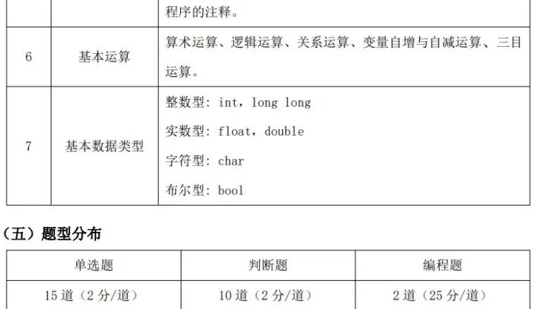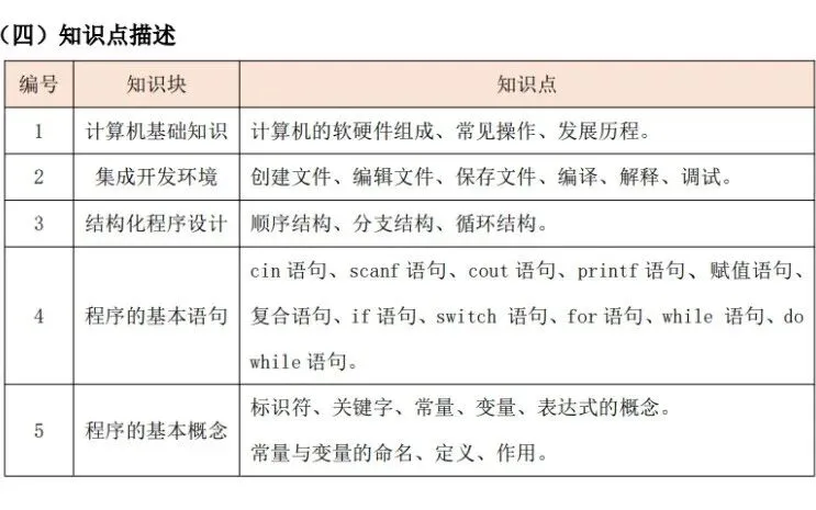 (1)了解计算机的基本构成(CPU,内存,I/O 设备等),了解Windows、Linux等操作系统基本概念和常见操作,了解计算机的历史及在现代社会中的常见应用。(2)熟悉集成开发环境使用(例如 Dev C++):创建文件、编辑文件、保存文件、编译、解释、调试。 (3)掌握基础的 cin 语句、scanf 语句、cout 语句、printf 语句,赋值语句等。 (4)掌握标识符、关键字、常量、变量、表达式的概念。(5)掌握常量与变量的命名、定义、作用、初始化与赋值以及变量的自加与自减运算。 (6)掌握基础算术表达式:加、减、乘、除、整除、求余。(7)掌握逻辑运算与(&&)、或(||)、非(!)。 (8)掌握关系运算:大于、大于等于、小于、小于等于、等于、不等于。(9)掌握基础的数据类型的定义和使用(整型、实数型、字符型、布尔型)。(11)掌握分支结构程序的编写,掌握 if 语句、if-else 语句、switch 语句,了解三目运算。 (12)掌握循环结构程序的编写,掌握 for、while、do-while 循环语句的使用以及 continue 语句和 break 语句在循环中的应用。学生通过计算机基础知识的学习,了解计算机的构成与操作,以及计算机的发展历程。通过编程基础知识以及语句的掌握,可以独立完成简单功能的顺序结构、分支结构、循环结构的程序。【出售告之】CSP-S 《数据结构与算法》课件正式起售……