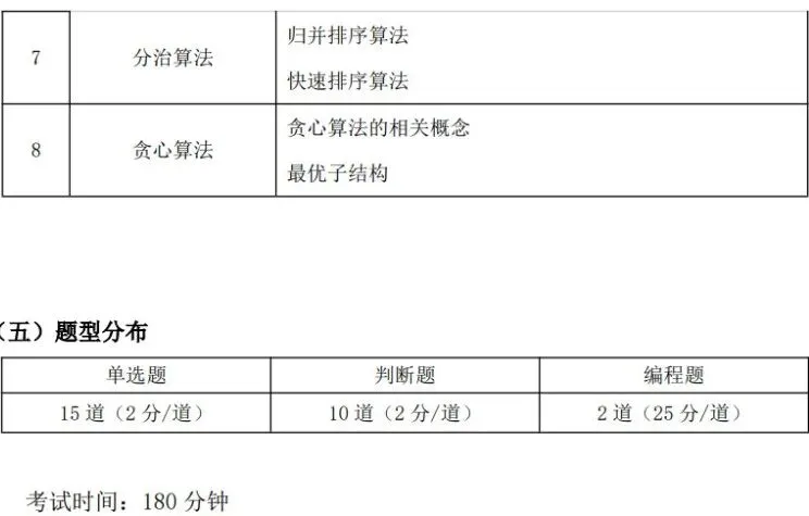 (1)理解 C++指针类型的概念,掌握指针类型变量的定义、赋值、解引用。(2)掌握 C++结构体、二维及多维数组(不包含变长数组)的基本概念及使用;掌握 Python 复合数据类型的嵌套使用。 (3)理解模块化编程思想,掌握函数(不包含匿名函数、类的括号运算符重载)的声明、定义及调用,掌握形参与实参的概念及区别。 (4)掌握变量作用域的概念,理解全局变量与局部变量的区别。(5)掌握函数参数的传递方式:C++值传递、引用传递、指针传递;Python值传递、引用传递。 (6)掌握递推算法基本思想、递推关系式的推导以及递推问题求解。(7)掌握排序算法的概念,了解内排序和外排序的概念及差别,理解排序算法的时间复杂度、空间复杂度、使用场景以及稳定性。 (8)掌握排序算法中的冒泡排序、插入排序、选择排序的算法思想、排序步骤及代码实现。 (9)简单算法复杂度的估算,含多项式、指数复杂度。(10)掌握文件操作中的重定向,实现文件读写操作,了解文本文件的分类,掌握写操作、读操作、读写操作。 (11)了解异常处理机制,掌握异常处理的常用方法。 掌握 C++指针类型、二维及多维数组(不包含变长数组)的基本使用;掌握Python复合类型的嵌套使用。通过函数相关知识的学习,掌握模块化设计思想,具备编写自定义函数程序的能力。掌握文件读写操作,并通过对排序算法、递推法的学习,可以根据不同的使用场景,合理选择最优的算法。(1)掌握初等数论相关知识的概念和应用,包括素数与合数、最大公约数与最小公倍数、同余与模运算、约数与倍数、质因数分解、奇偶性等。(2)掌握 C++数组模拟高精度加法、减法、乘法和除法的相关知识。(3)掌握链表的创建、插入、删除、遍历和反转操作,理解单链表、双链表、循环链表的区别。 (4)掌握辗转相除法(也称欧几里得算法)、素数表的埃氏筛法和线性筛法、唯一分解定理的原理和应用。(6)掌握二分查找和二分答案算法(也称二分枚举法)的基本原理,能够在有序数组中快速定位目标值。 (7)掌握递归算法的基本原理,能够应用递归解决问题,能够分析递归算法的时间复杂度和空间复杂度,了解递归的优化策略。 (8)掌握贪心算法的基本原理,理解最优子结构,能够使用贪心算法解决相关问题。 (9)掌握分治算法的基本原理,能够使用归并排序和快速排序对数组进行排序。 掌握初等数论知识点,能够使用辗转相除法(也称欧几里得算法)、素数表的埃氏筛法和线性筛法、唯一分解定理等相关知识解决相应的问题。掌握单链表、双链表、循环链表的基本操作方法。掌握算法复杂度估算方法(含多项式、对数),熟悉二分法、分治法、贪心算法和递归算法的算法思想,能够根据实际情况选择合适的算法并完成解决相应的问题。C++掌握使用数组模拟高精度加法、减法、乘法和除法的知识。【出售告之】CSP-S 《数据结构与算法》课件正式起售……