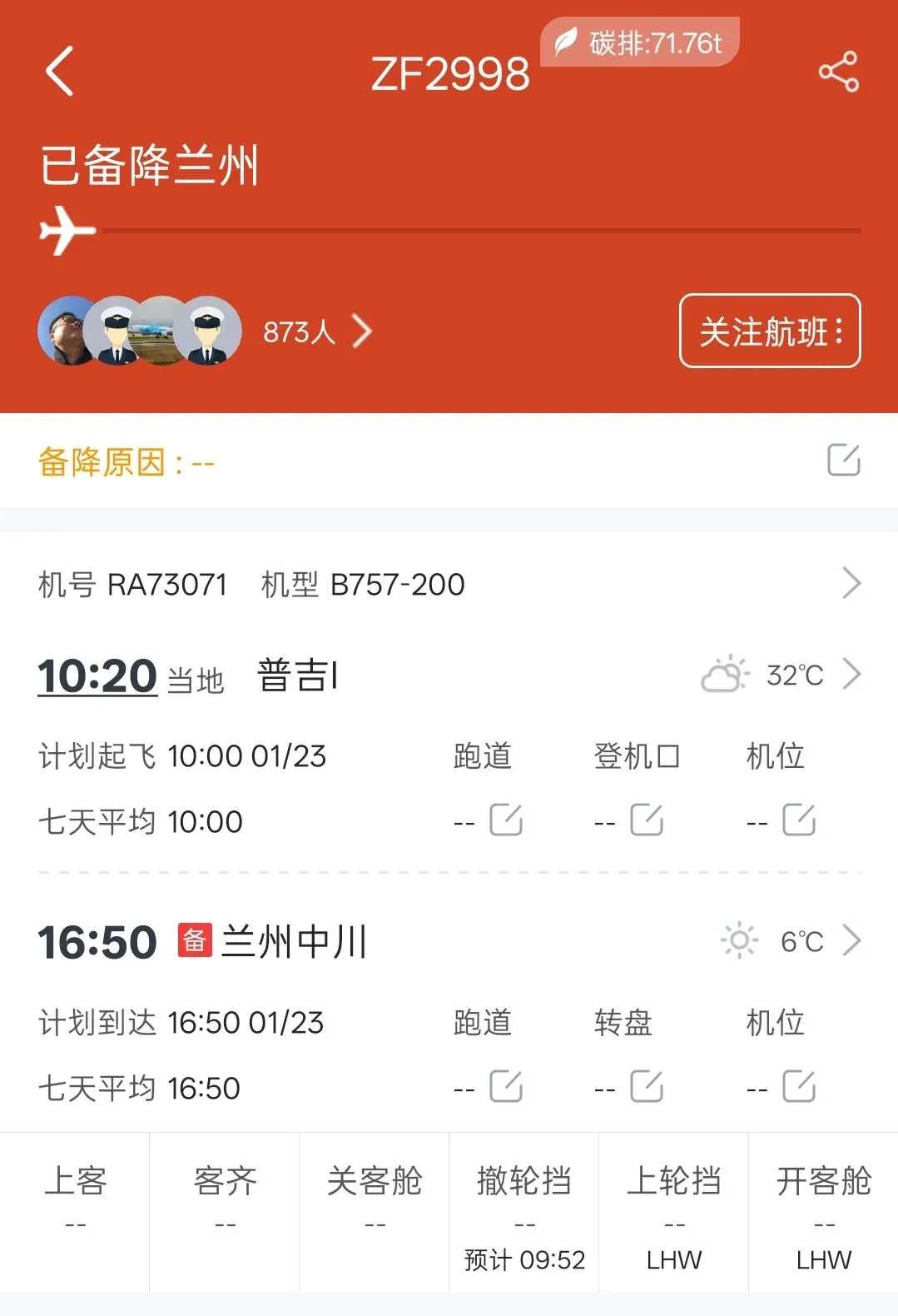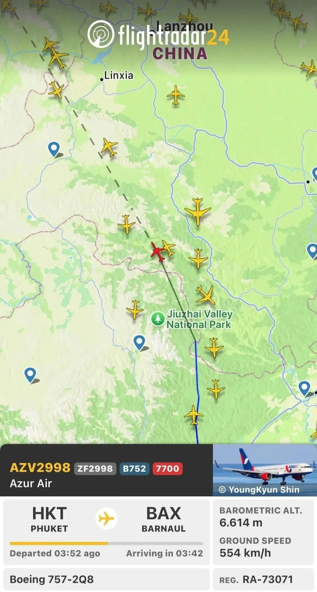 1月23日下午,俄罗斯Azur Air航空ZF2998航班在从泰国普吉岛飞往俄罗斯巴尔瑙尔的途中,飞越中国领空时突发状况,机组果断触发7700紧急应答机代码,最终于北京时间16:50安全备降兰州中川国际机场,机上238名乘客及机组人员全部平安,无人员伤亡报告。