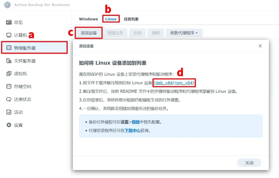 2.在需要备份的物理服务器上下载并安装Agent。