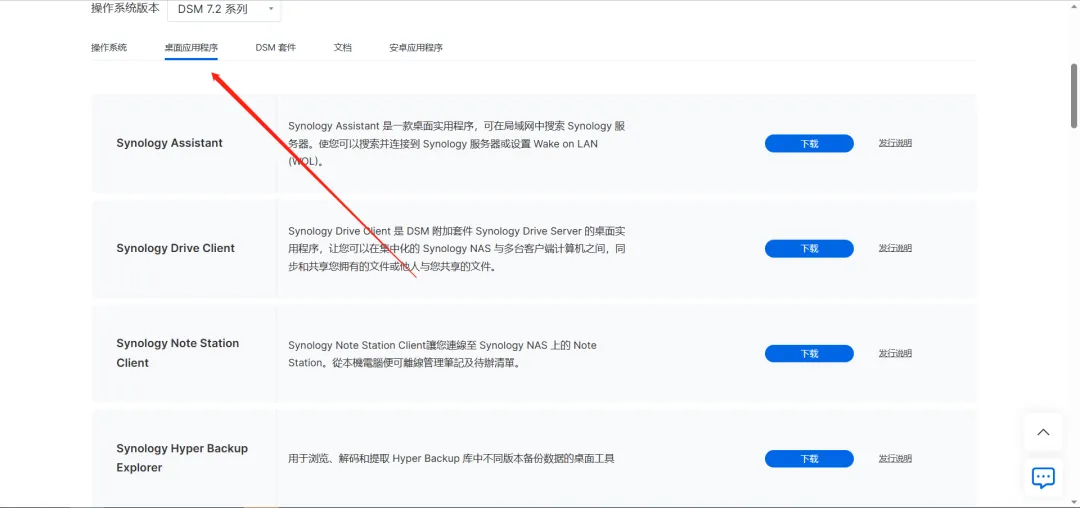 下载地址 https://www.synology.cn/zh-cn/support/download