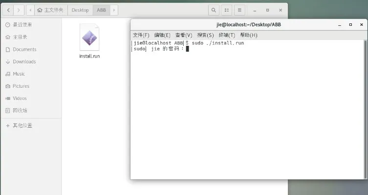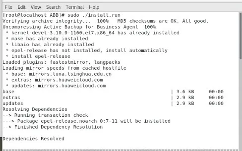 3.2 在解压后的安装包所在文件夹打开终端,输入执行命令 sudo ./install.run,将快照驱动程序以及代理程序安装在 Linux 设备上,若以非 root 管理员帐号登录,则需再次输入密码。