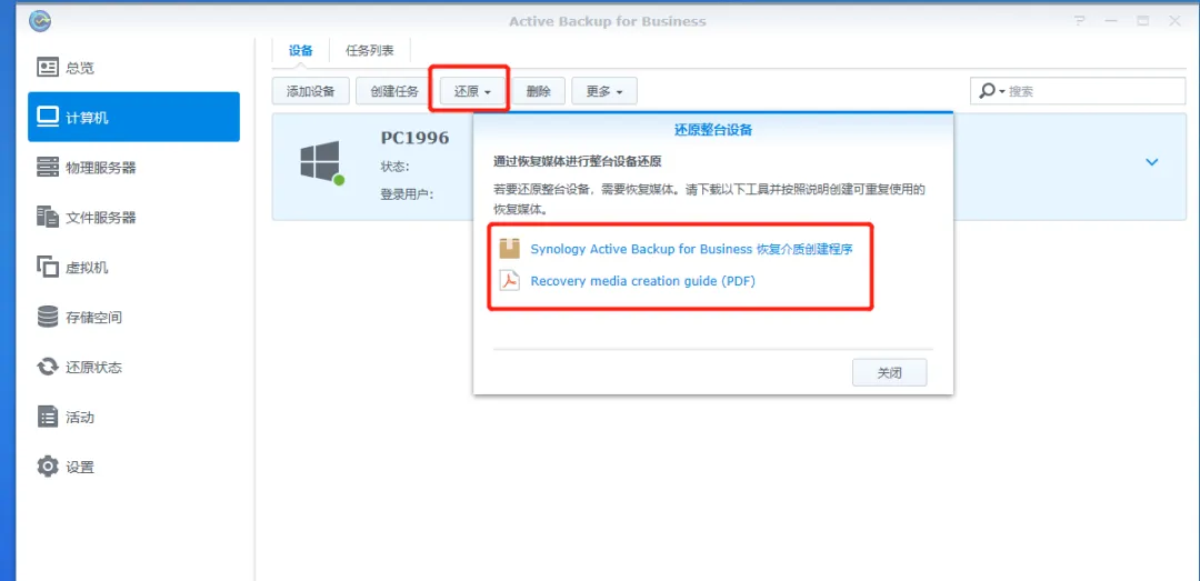 1.群晖的整机还原是基于PE环境还原,所以需要先创建U盘PE环境,参考下面PDF文档。(从群晖NAS或者官网均可以下载)