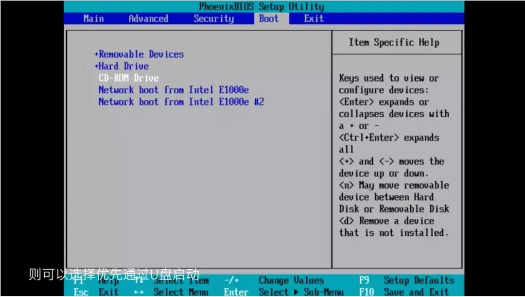 2.创建好U盘后,连接U盘并进入物理服务器BIOS,选择U盘启动。