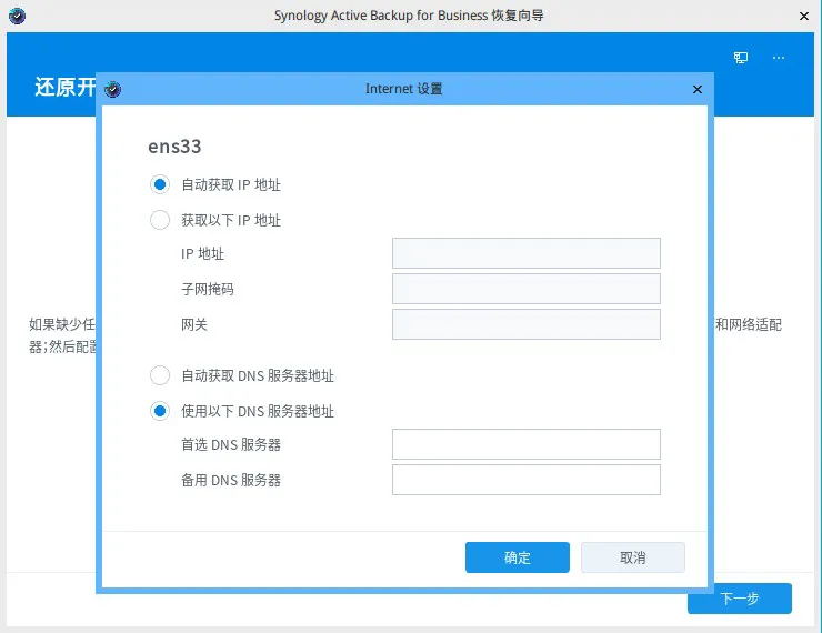 4.若您的网络非 DHCP,则需在网络设置内手动配置。