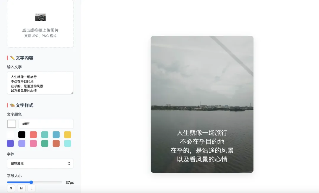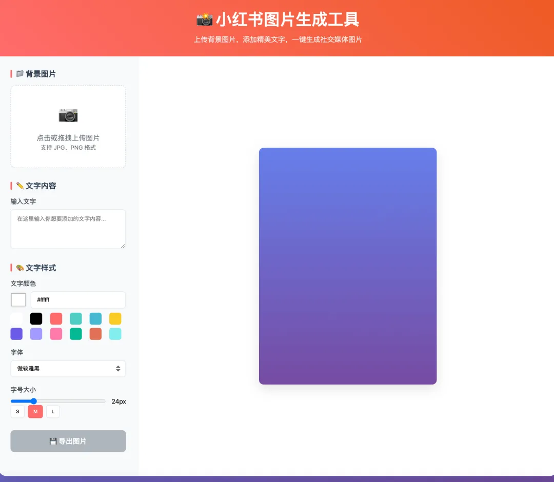 请帮我开发一个小红书图片生成工具,用户上传背景图片,输入自定义文字内容,自动生成带有精美文字排版的图片,适用于小红书等社交平台分享。