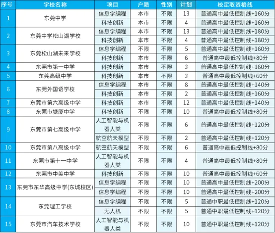2025年东莞市一共有13所高中招收科技特长生,其中“科技创新”“信息学编程”赛道招生人数较多。例如东莞中学、东莞中学松山湖学校、松山湖未来学校、东莞外国语学校、东莞高级中学、东莞市第一中学、东莞市第六高级中学等东莞头部高中(八大校)可供选择,是孩子冲击名校的不二选择。