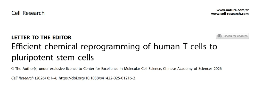 基于T细胞的免疫细胞治疗在癌症、感染和自身免疫性等疾病中展现了出显著疗效,但其广泛应用仍面临一个根本限制:具有特异识别能力的T细胞在体外扩增能力有限,且容易进入功能耗竭状态,严重影响治疗效果。如何获得大量高质量抗原特异性T细胞是领域内亟待解决的难题。将T细胞“返老还童”,重编程为能够无限自我更新的多能干细胞,同时保留其原有的独特TCR序列,被认为是解决这一问题的理想策略。T细胞来源多能干细胞可再次分化为T细胞,从而可提供源源不断的、抗原特异的T细胞。然而,终末分化的T细胞身份非常稳固,传统基于转录因子的重编程方法应用于T细胞的效率极低,难以捕获多样的TCR,限制了其临床应用。