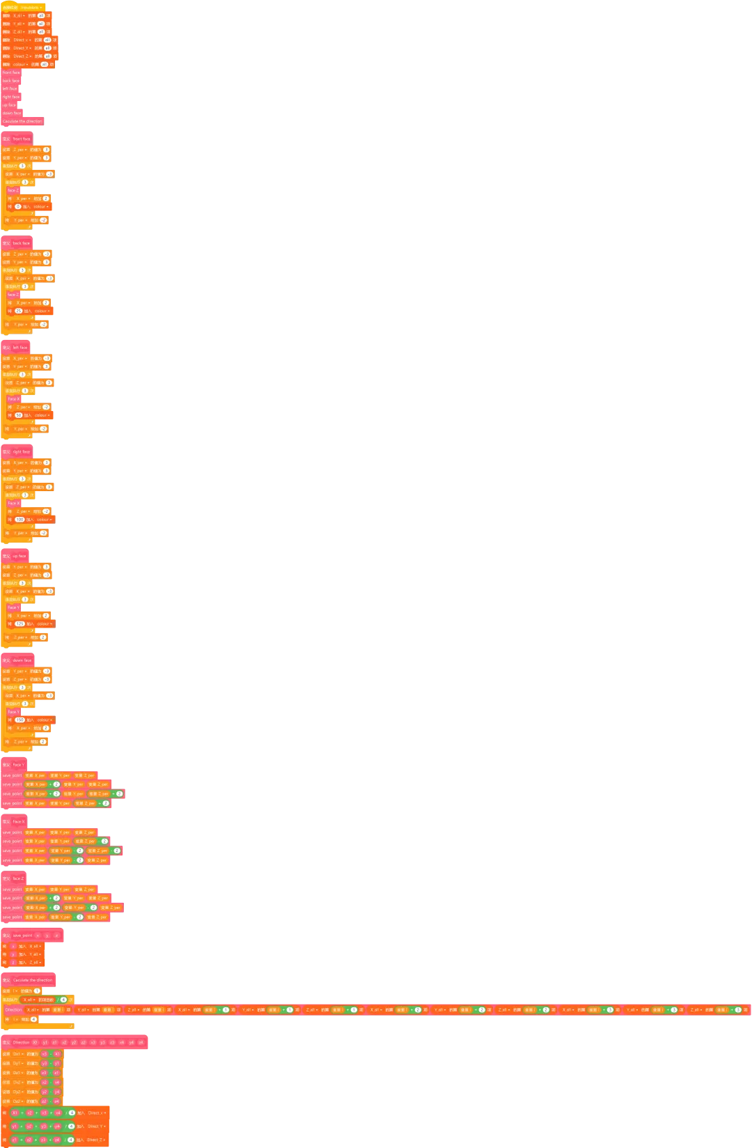 这个角色的代码主要是一些自定义积木,用于生成魔方的各个面和块。