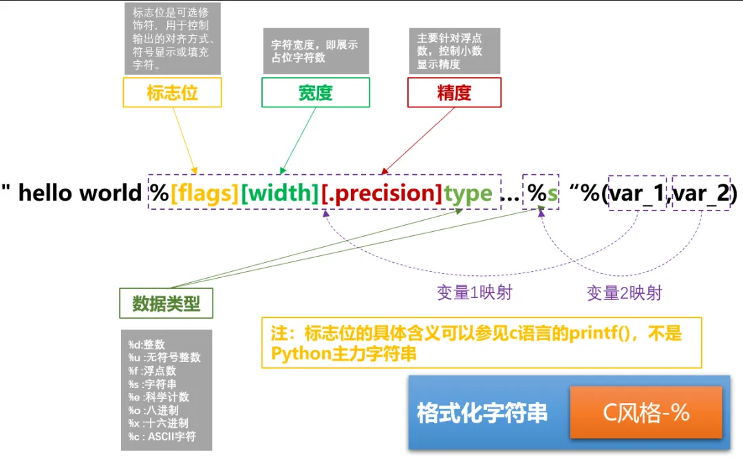学习过C语言的都知道,C语言里的字符串实在是让头大,但其也不乏设计的哲学,用起来还是挺高效的。下图展示的是C风格的%字符串使用方法。