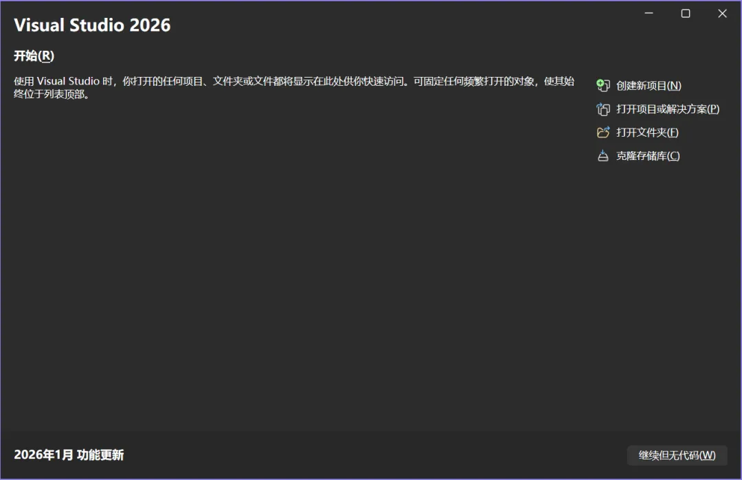 5、启动Visual Studio打开已安装的Visual Studio开发环境