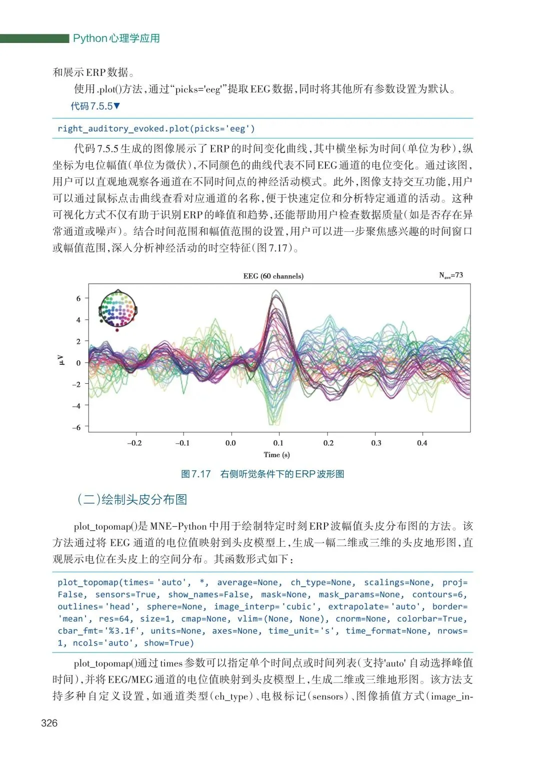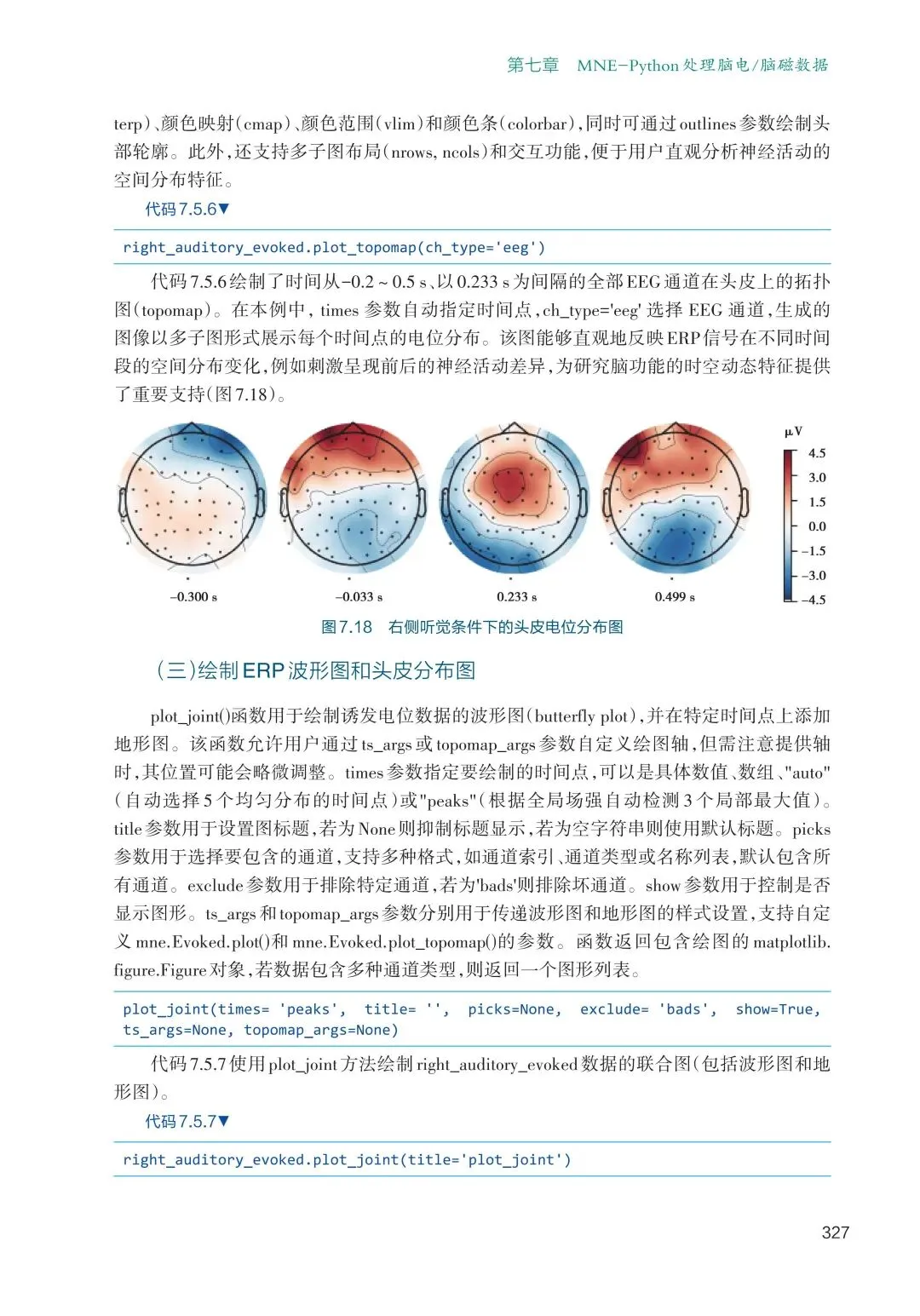 第七章 MNE-Python 处理脑电/脑磁数据 272第 1 节 MNE-Python 概述与安装 273第 2 节 加载与查看原始脑电数据 279第 3 节 数据预处理 297第 4 节 分段数据的读取和查看 316第 5 节 事件相关电位信号特征分析 321第 6 节 频率信号特征分析 331第 7 节 时频信号特征分析 335第 8 节 基本统计分析 337