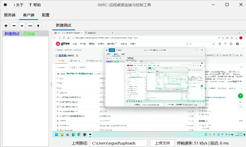 JWRC 是一款基于 Java 实现的开源免费(GPL-2.0)、跨平台远程桌面连接工具,旨在提供高质量的远程桌面体验,支持Windows、Linux、Mac、统信UOS等国产操作系统,支持arm、mips和loongArch架构,服务端与客户端一体。代码完全开源,免费商用。用于平替ToDesk、vnc、TeamViewer、AnyDesk、FreeRDP、Quasar等远程控制工具。