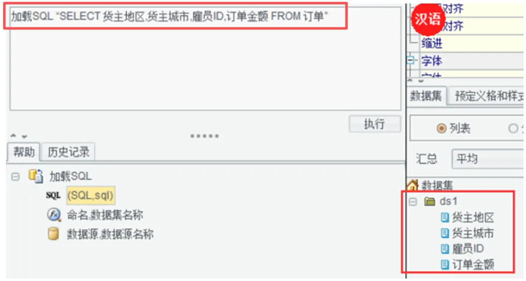 指令:加载 SQL “SELECT 货主地区, 货主城市, 雇员 ID, 订单金额 FROM 订单”