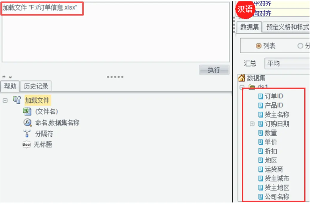 指令:加载文件 “F:/ 订单信息.xlsx”