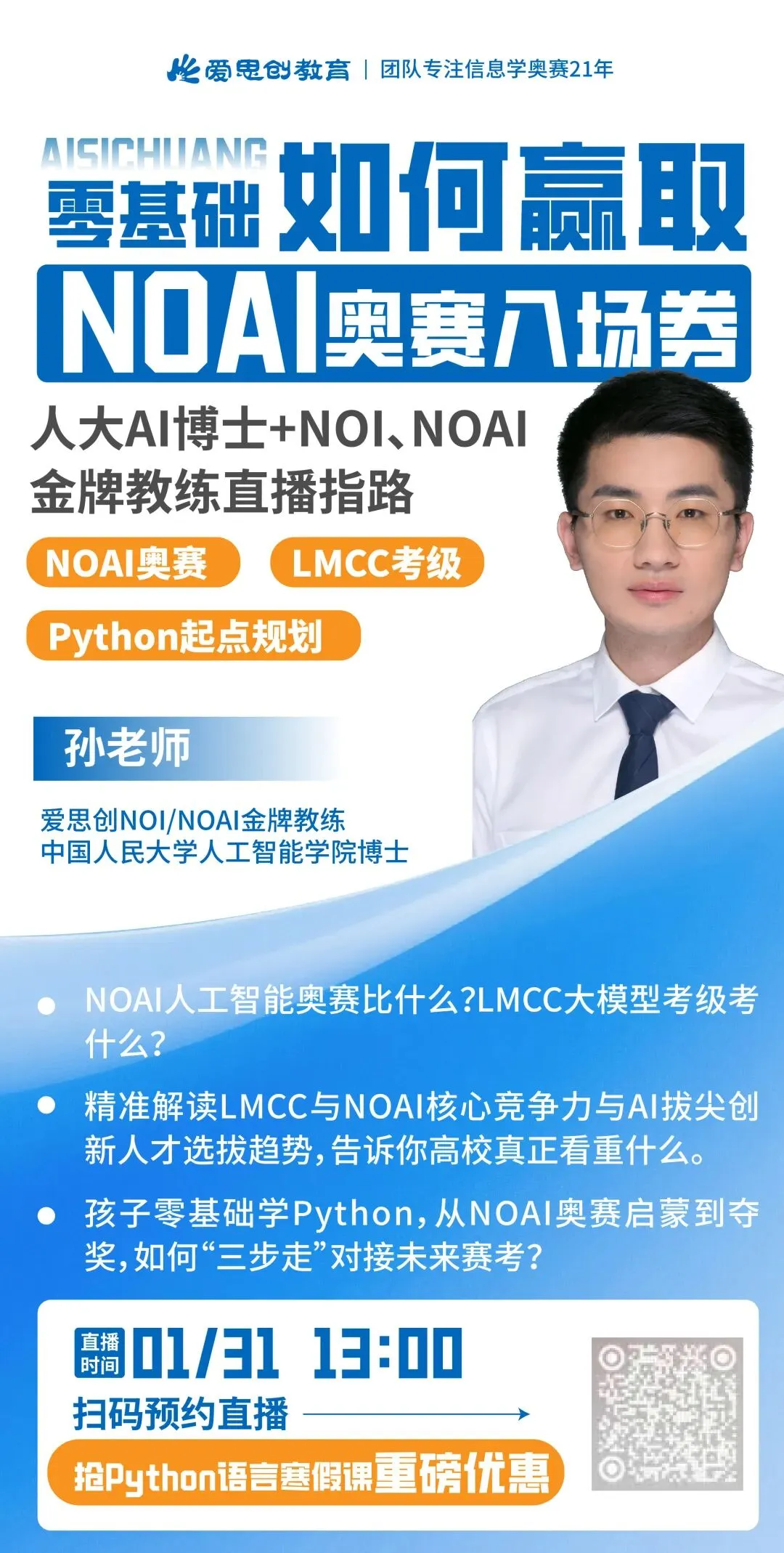 Python零基础赢取NOAI人工智能奥赛入场券,1月31日人大AI博士、NOAI金牌教练直播指路!