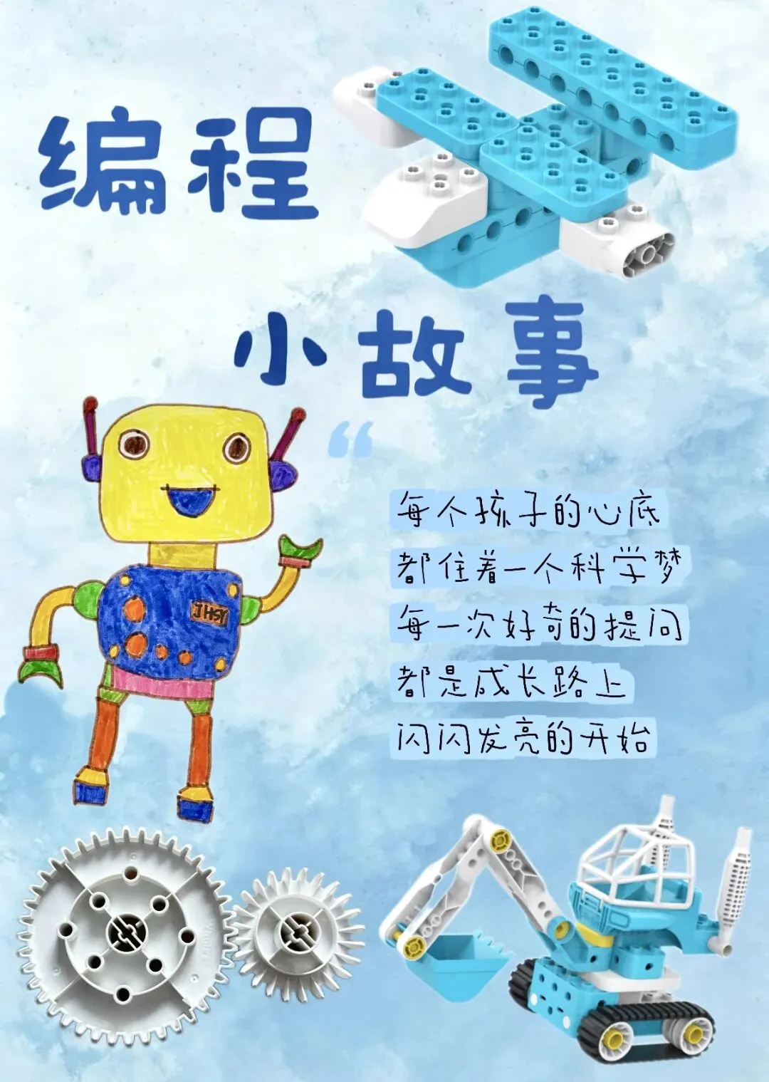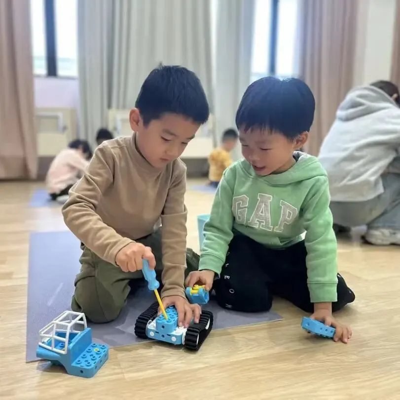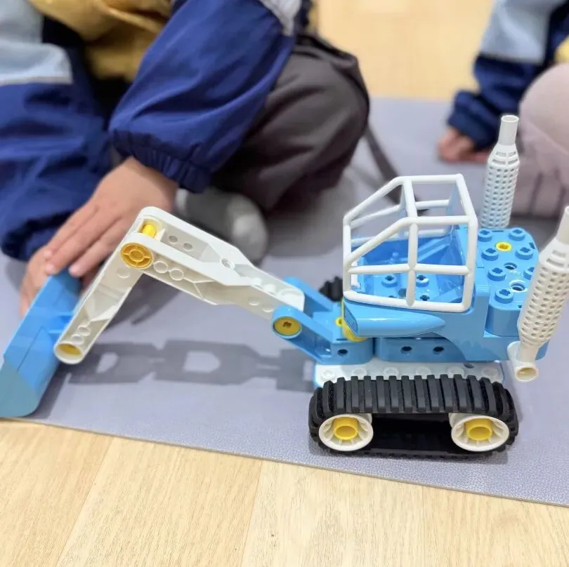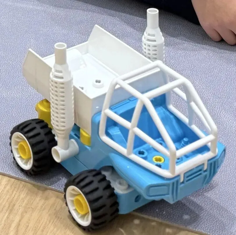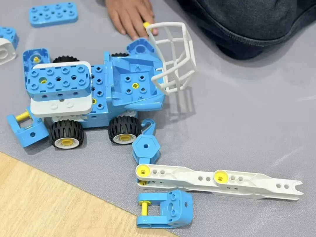 我们搭过厉害的火箭炮车、会跑的运输车,还有大力无穷的铲车。原来,动手创造就是一个魔法过程——把脑海里那些天马行空的念头,一点点“搬运”到现实世界中。那一刻,我觉得自己真的像个小发明家。