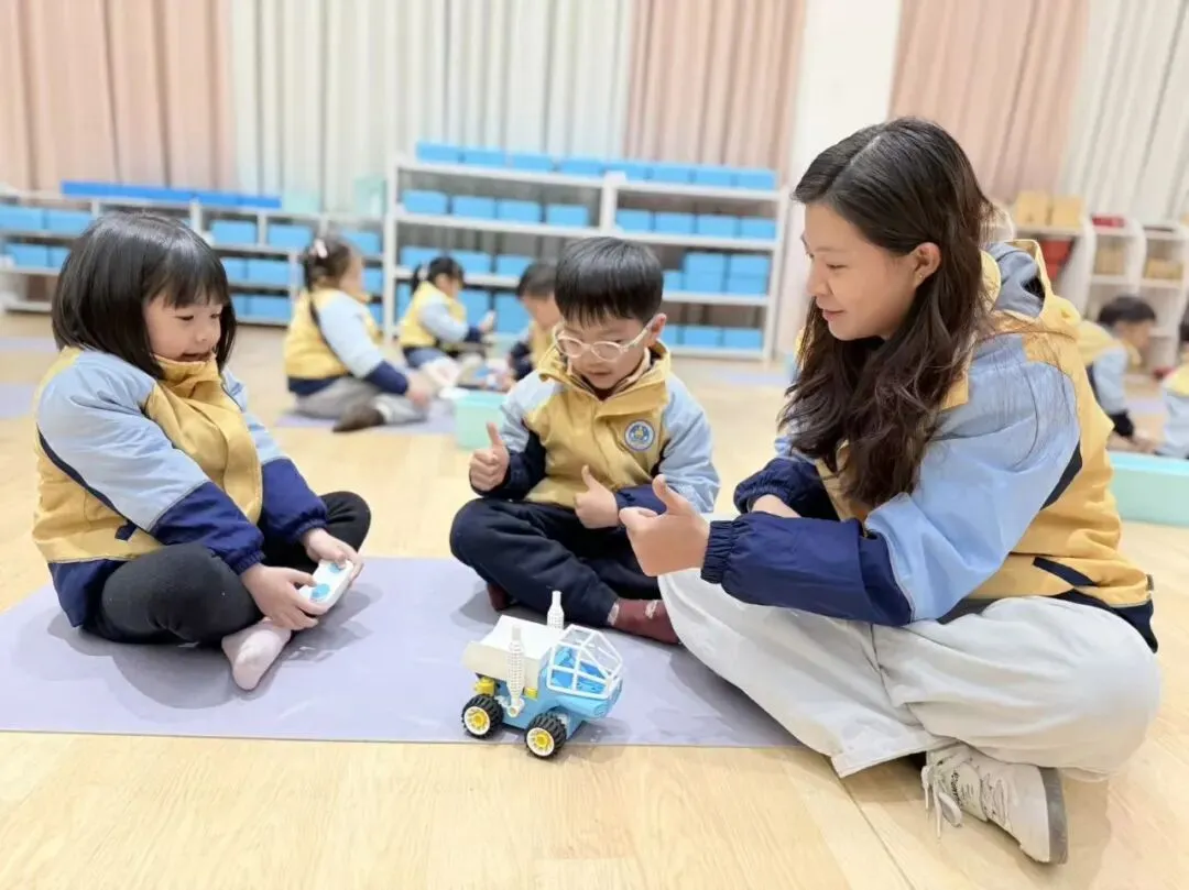 每天最开心的就是“探索时间”。我可以摸摸积木、试试小车,原来每天陪伴我的玩具里,藏着这么多有趣的机关!老师从不直接告诉我们答案,而是眨眨眼说:“你来试试看?”就这样,我心里那颗好奇的种子,一天天悄悄发芽。