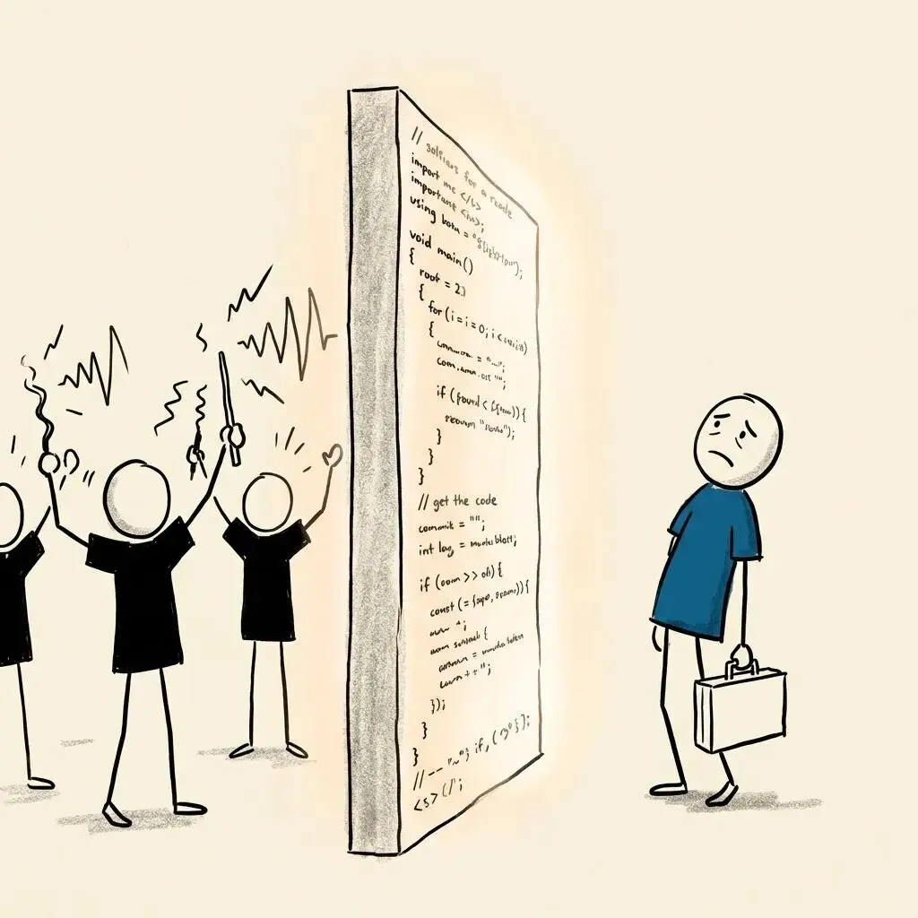墙外的人是普通人,无论你在自己的领域(设计、销售、行政)多么资深,一旦涉及“做个工具解决问题”,你就得求助于墙里的人,或者被迫支付昂贵的外包费用。