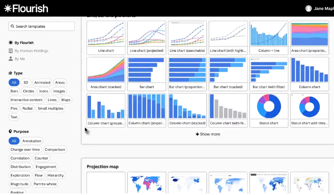 Flourish是一个专注于制作交互式、动态和数据可视化故事的在线平台。它不负责复杂的数据计算,但能把你的分析结果,变得无比生动和具有传播力。