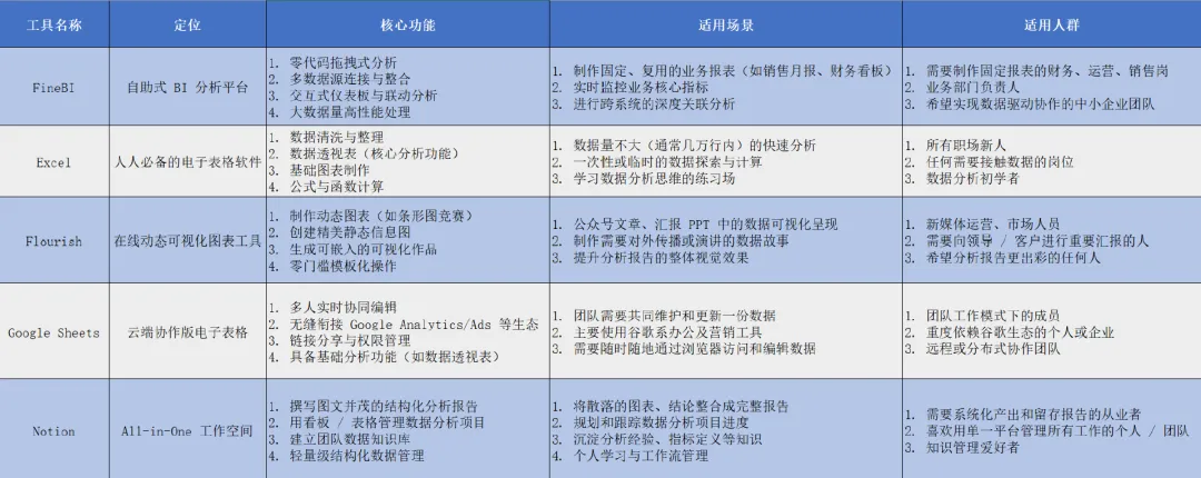 其他三个工具,可以等你有具体需求,比如要做炫酷图表、要团队协作、要写报告的时候再学。