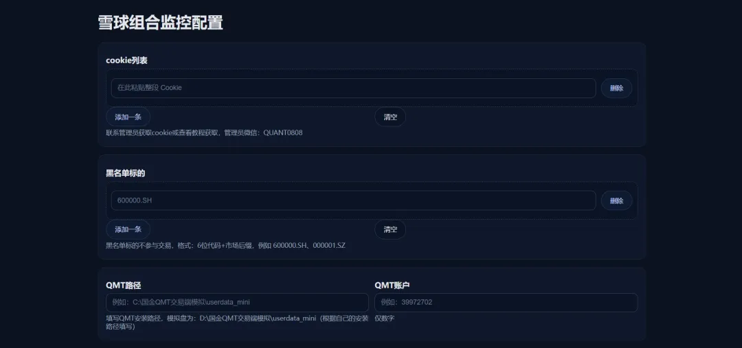 有雪球cookie,QMT才能自动读取雪球组合数据;cookie失效,跟单就会立刻停止。需要定期更换cookie。