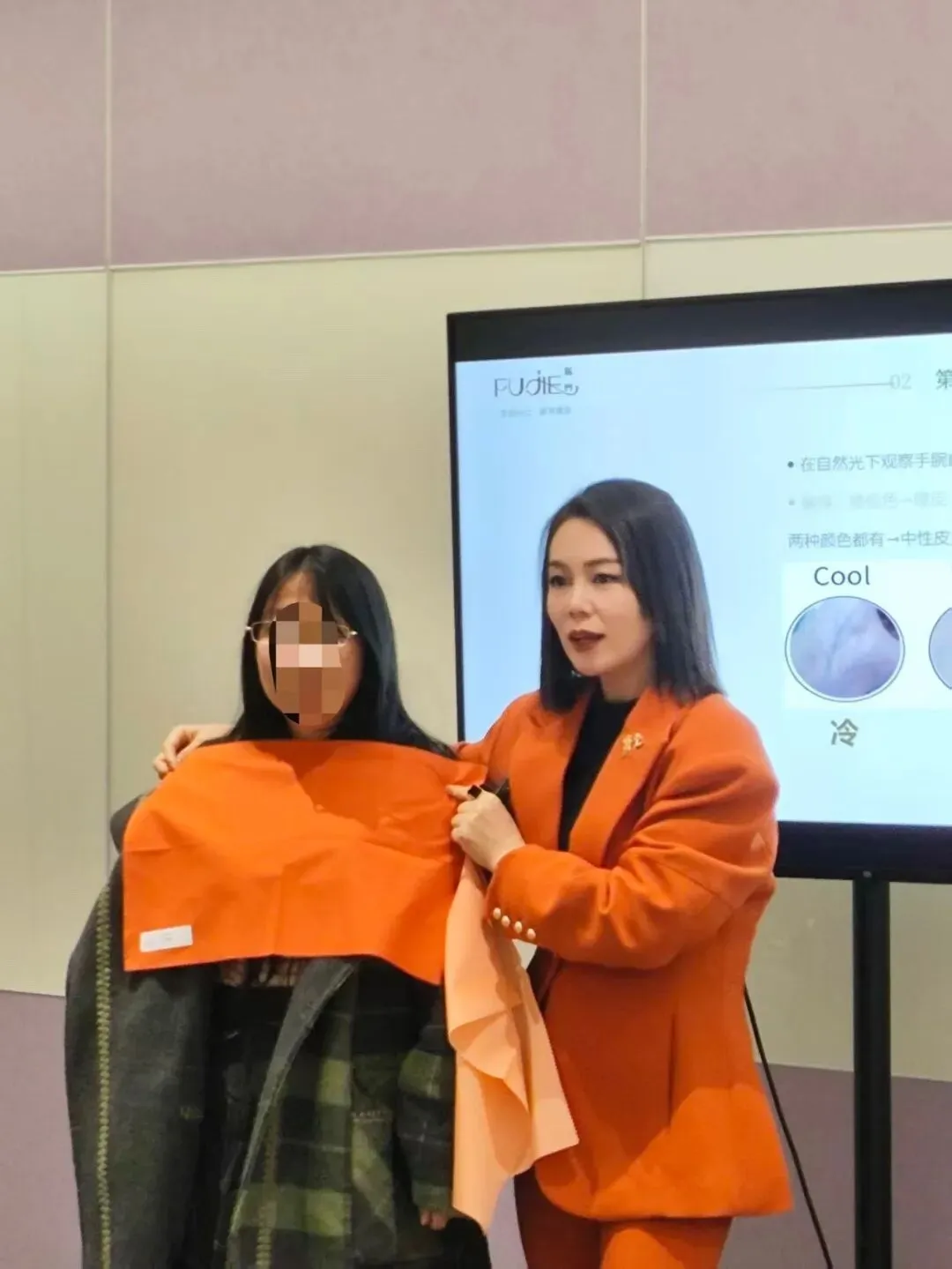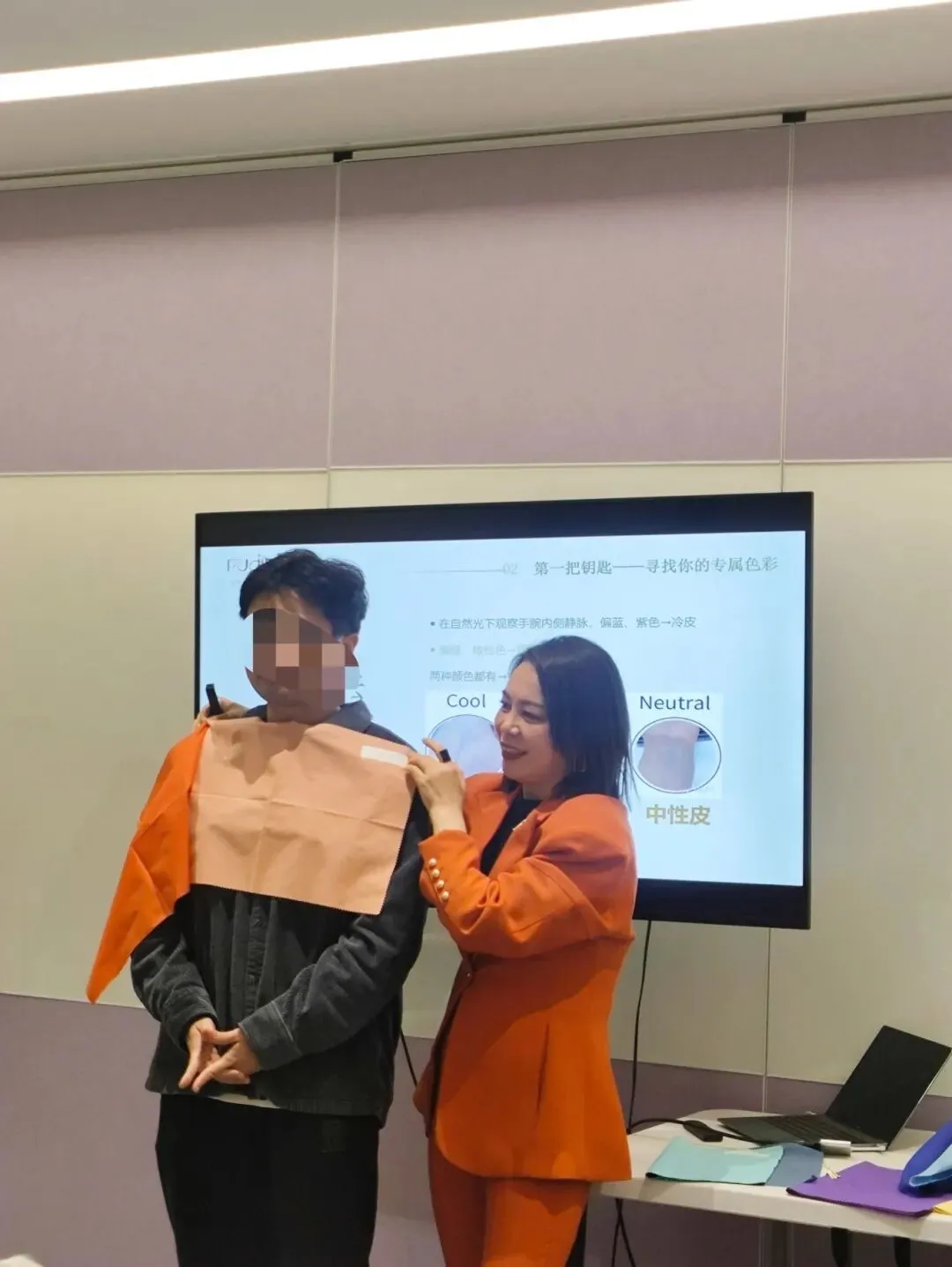 培训现场,最有趣的环节莫过于“色彩诊断”。