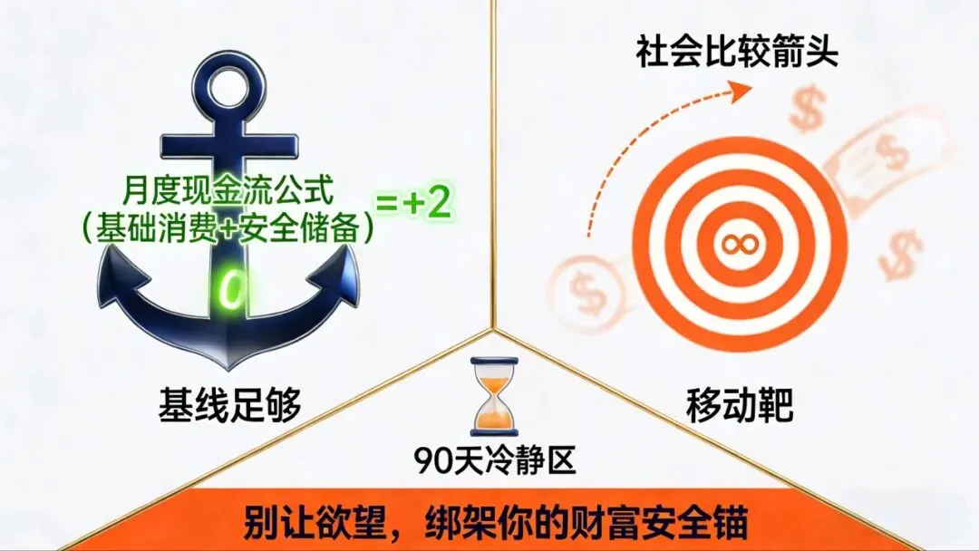 2. 欲望缓冲期:任何超出基线的消费或升级欲望,强制进入 “90天冷静区” 。若到期后渴望依旧,且不影响安全锚,再启动精算决策流程。