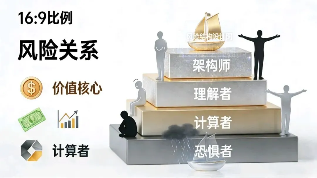 · 架构师(顶级):不预测风险,而是设计风险结构。他们构建“不对称性”,用有限损失博取无限收益,像建造无论风向都能借力前进的帆船。