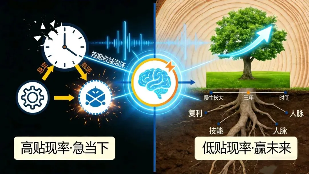 经济学用“贴现率”衡量未来价值在今天打多少折扣。你的大脑每时每刻都在执行这套算法,而你的财富轨迹就是贴现率的显形。