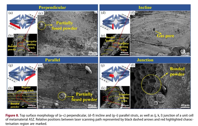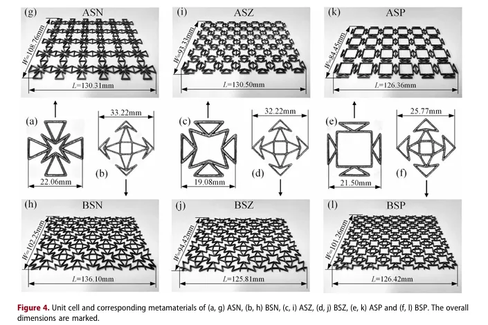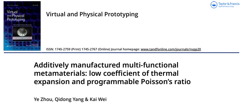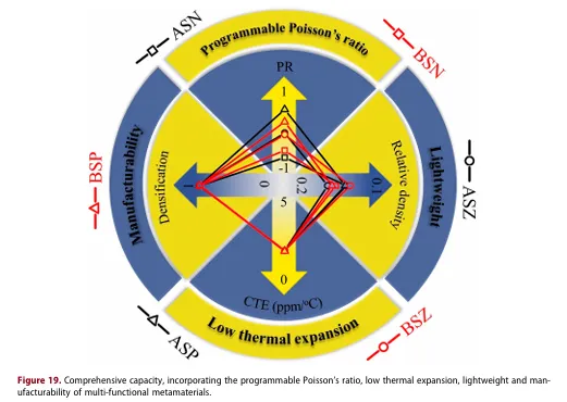 本研究以因瓦 36 合金为基体材料,研发出一系列兼具低热膨胀系数(CTE)与可编程泊松比(PR)特性的多功能超材料,并采用激光粉末床熔融(PBF-LB)增材制造技术完成材料制备。研究团队通过系统性的表征与验证实验,对该类超材料的可制造性、轻量化特性、低热膨胀系数及可编程泊松比功能展开全面分析,同时创新性地揭示了 “工艺 - 微观结构 - 性能” 之间的内在作用机制。本研究的核心结论归纳如下:
