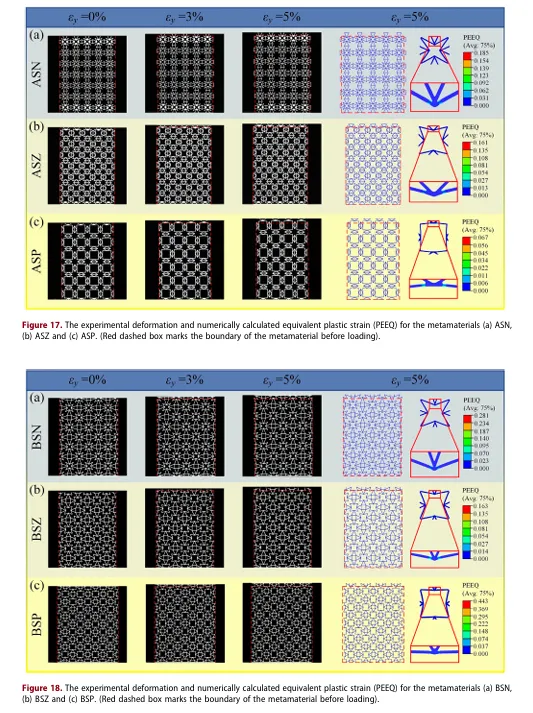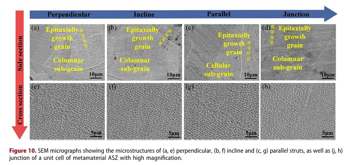 本研究以因瓦 36 合金(Invar 36 alloy)为基体材料,创新性设计并通过激光粉末床熔融(PBF-LB)增材制造技术制备出一系列兼具低热膨胀系数(CTE)与可编程泊松比(PR)特性的多功能超材料。为全面表征该类超材料的综合性能,研究团队采用实验测试与数值建模相结合的方法,对材料的致密化程度、相对密度、微观组织结构、热膨胀系数及泊松比展开系统性分析。实验结果表明,所制备的超材料具有均匀的微观组织结构,这一特征使其呈现出各向同性的低热膨胀特性,热膨胀系数数值区间稳定在1.79~1.85 ppm/°C,远低于常规金属材料的热膨胀水平,能够有效抑制温度变化引发的结构变形,适用于对尺寸稳定性要求严苛的应用场景。与此同时,该设计的超材料实现了泊松比的宽范围精准调控,调控区间可达 -0.54~+0.58,与理论预测值高度吻合,充分验证了其泊松比可编程的核心设计目标。研究进一步揭示了该超材料实现性能调控的内在机理:角度参数θ1的变化是主导超材料横向变形行为的关键因素,通过调整这一核心几何参数,可定向调控超材料在受载时的横向收缩或膨胀效应,进而实现泊松比从负值到正值的连续可调。综上,该类超材料成功实现了低热膨胀系数与可编程泊松比特性的有机集成,相较于聚合物基多功能超材料,其具备更宽的工作温度区间与更优异的力学性能,可满足航空航天、精密仪器、高端装备制造等领域的复杂应用需求,展现出广阔的工程应用前景。