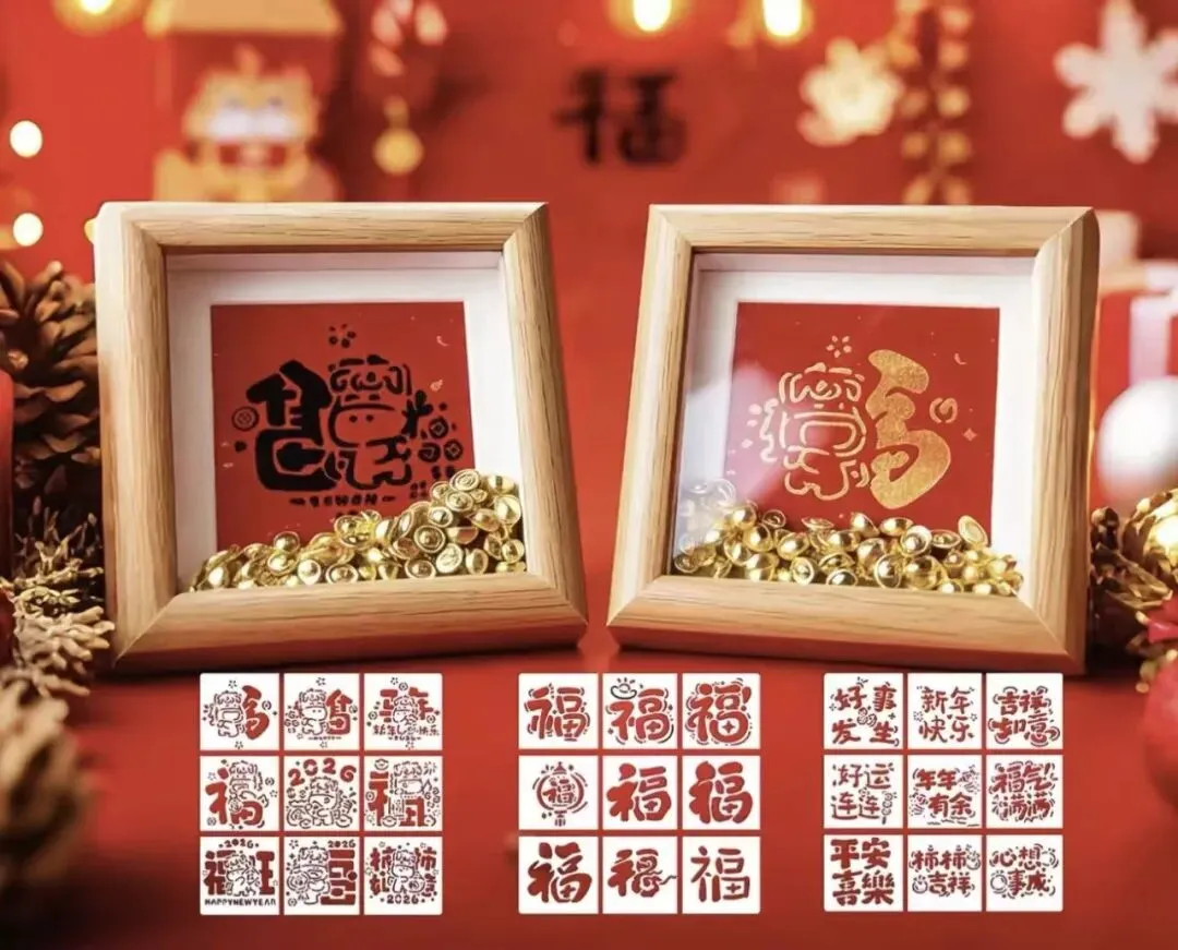 孩子可以选择喜欢的“福”字进行拓印,将自己的祝福和亲手制作的创意作品带回家。