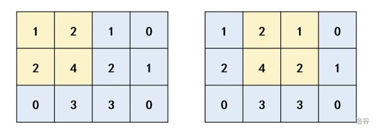 样例中好的子矩阵如下: