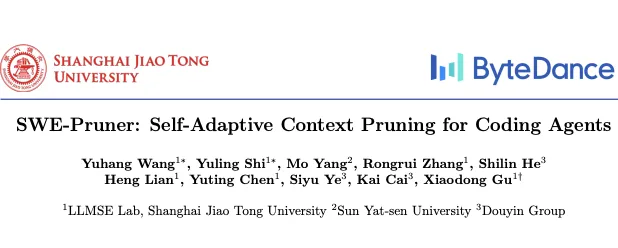 这篇报告由上海交通大学和字节跳动团队联合发布,主题是SWE-Pruner——一种专为AI编码代理设计的自适应上下文剪枝框架。核心结论是:SWE-Pruner能显著减少编码代理在处理长代码上下文时的token消耗和交互轮次,同时保持任务性能基本不变。例如,在SWE-Bench Verified基准测试中,token使用量减少23%-38%,交互轮次降低18%-26%,而任务成功率仅下降不到1%。