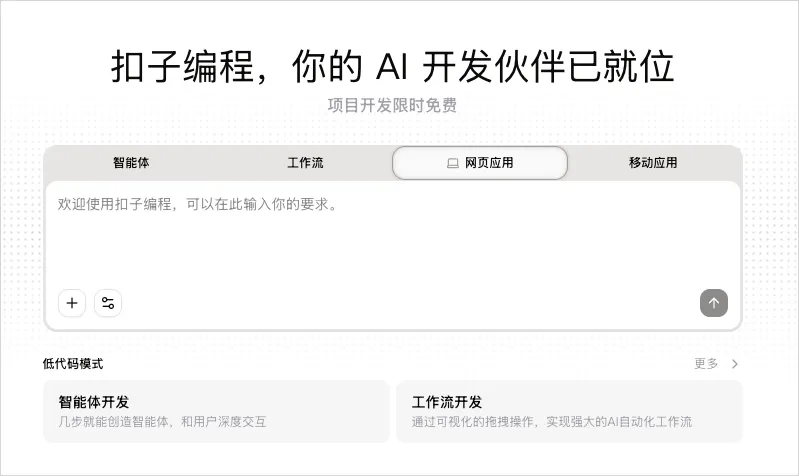 扣子编程提供了一个基于 Web 的 AI 编程开发环境,你可以在代码编辑器中修改代码文件、在终端中执行命令调试代码,和扣子 AI 一起开始开发你的应用。关于 AI 编程开发环境的使用技巧,可参考AI 编程环境。