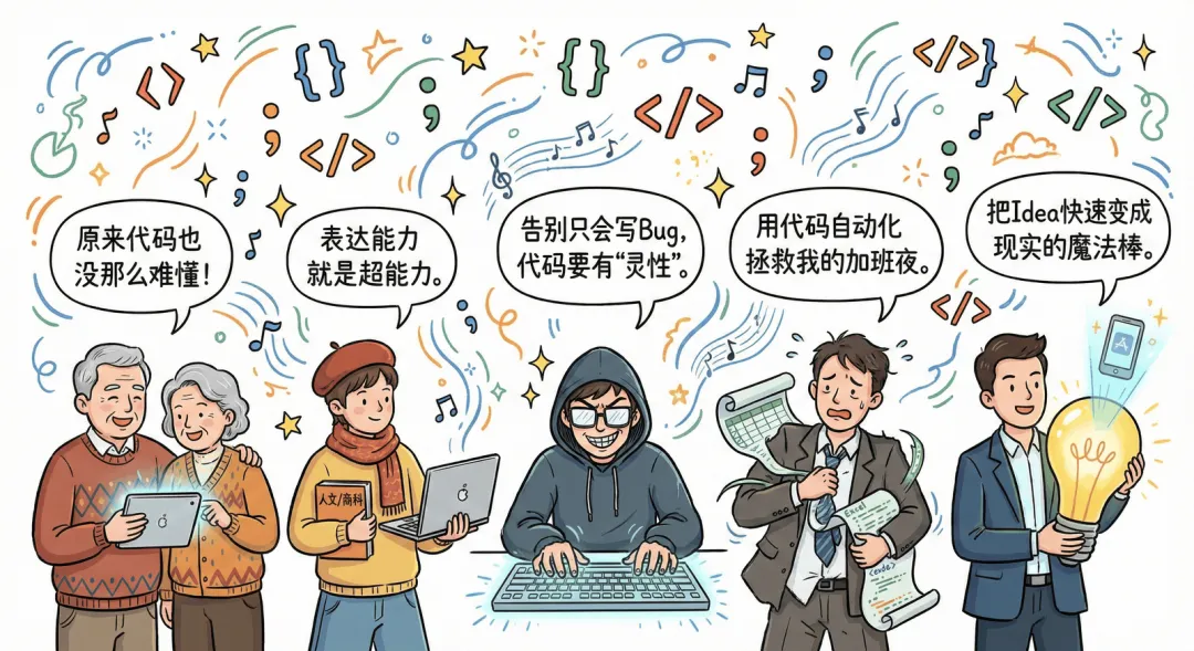 很多文科出身的朋友,一提到“编程”两个字,脑子里跳出来的画面就是:黑漆漆的屏幕,满屏看不懂的单词,还有那永远写不完的代码。于是你告诉自己:“我不行,我没那个逻辑,我数学不好。”如果你现在还这么想,那你可能正在错过这辈子最大的职业红利。我周围有很多做AI创业的文科生,发现他们更多的是从人的角度出发做AI产品,探索AI与人的关系,更具有人文性,而非单纯地用产品提升用户生产效率。我甚至觉得,AI时代,文科生在很多AI场景更有优势。我也指导了不少完全不懂代码的文字工作者、行政、甚至是学艺术的小白,亲手做出了自己的网页、App和小程序。他们一开始没学过什么是“循环”或“变量”靠的是一种全新的逻辑—— Vibe Coding(氛围编程) 。你要把人的想法,翻译成电脑能懂的C++、Java。这对文科生来说太痛苦了,因为翻译的过程要求极致的严谨,少个分号程序就崩了。AI现在就是那个技术顶级、但没啥主见的“程序员”,而你,是 导演 。“我要一个电影开场,要有王家卫的那种潮湿感,色彩要暖黄,主角要落寞。”“我要一个记账小程序,UI要像小红书一样精美,按一下就能语音识别我花了多少钱。”发现了吗?文科生最擅长的“表达力”、“逻辑叙事”和“审美感”,反倒成了AI时代最核心的编程能力。很多小白入门第一步就错了:去下载VS Code,然后配置各种复杂的环境,最后死在安装插件上。- Trae(国产之光,字节跳动出品)