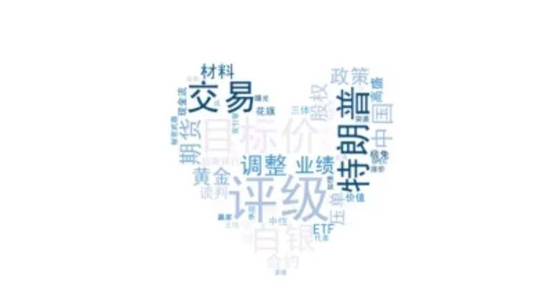 import jieba.posseg as psegimport matplotlib.pyplot as pltfrom os import pathimport reimport requestsfrom PIL import Image#图像处理库import numpy as npfrom wordcloud import WordCloudplt.style.use("ggplot")def fetch_sina_news(): # PATTERN = re.compile('.shtml" target="_blank">(.*?)</a><span>(.*?)</span></li>')#提取摘要 PATTERN = re.compile('"title":(.*?),')#提取标题 # BASE_URL = "http://roll.news.sina.com.cn/news/gnxw/gdxw1/index_" #提取数据的API接口 BASE_URL = 'https://feed.mix.sina.com.cn/api/roll/get?pageid=153&lid=2509&k=&num=50&page=1&r=0.8649260052895962&callback=jQuery1112045860870699715606_1700536939737&_=1700536939738' # MAX_PAGE_NUM = 10 with open('subjects.txt', 'w', encoding='utf-8') as f: #for i in range(1, MAX_PAGE_NUM): #print('Downloading page #{}'.format(i)) # r = requests.get(BASE_URL + str(i)+'.shtml') r = requests.get(BASE_URL) # r.encoding='gb2312' # data = r.text data = r.text.encode('utf-8').decode('raw-unicode-escape')#解决编码问题 p = re.findall(PATTERN, data) for s in p: # f.write(s[0]) f.write(s) # time.sleep(5)def extract_words(): with open('subjects.txt', 'r', encoding='utf-8') as f: news_subjects = f.readlines() #用集合推导式生成停用词集合,推导式参数:元素for元素in序列if条件 #line.strip()可以跳过每行首位的空白字符 stop_words = set(line.strip() for line in open('stopwords.txt', encoding='utf-8')) newslist = [] for subject in news_subjects: if subject.isspace(): continue#跳过空行 # segment words line by line p = re.compile( "n[a-z0-9]{0,2}") # n, nr, ns, ... are the flags of nouns,编译成一个正则对象,n表示名词 word_list = pseg.cut(subject)#分词+词性标注,返回词语和词性(名词、动词等) for word, flag in word_list: if word not in stop_words and p.search(flag) != None:#不在停用词表里且有词性标注(是个词儿) newslist.append(word) # Using Counter function to compute word frequency # from collections import Counter;词频统计方法1 # content = Counter(newslist) # Manually compute word frequency content = {} for item in newslist: content[item] = content.get(item, 0) + 1#计算词频方法2,第一次出现就取0 #d = path.dirname(__file__) mask_image = np.array(Image.open(('love.jpg')))#需要数组存图像像素信息 Wc = WordCloud( font_path='simhei.ttf', background_color='white', # color of background mask=mask_image, colormap='PuBu', # the color map of words max_words=50)#词云图参数设置 wordcloud = Wc.generate_from_frequencies(content)#从这里获取词频 # Display the generated image: plt.imshow(wordcloud)#渲染出来 plt.axis("off")#隐藏坐标轴和刻度 wordcloud.to_file('wordcloud.jpg') # Or save the map with plt.savefig to control the image dpi # plt.savefig('wordcloud.jpg', dpi=200) plt.show()#显示当前绘制的图像if __name__ == "__main__": fetch_sina_news() extract_words()