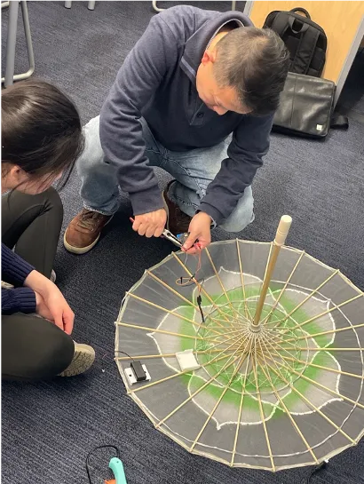 在一学期的学习体验里,孩子们按照迭代式设计流程为经典中国舞《茉莉花》完成了舞蹈道具。他们不光学习编程,还要学习设计理念和方法,并就个人的设计思想进行充分小组和班级讨论。