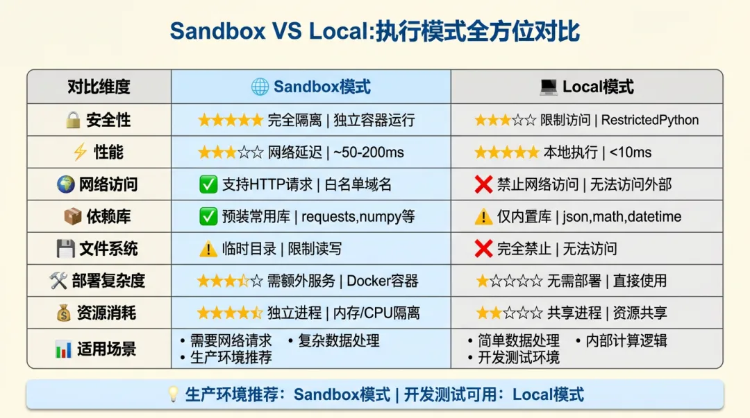 CODE_EXECUTION_MODE=sandbox # 或 local