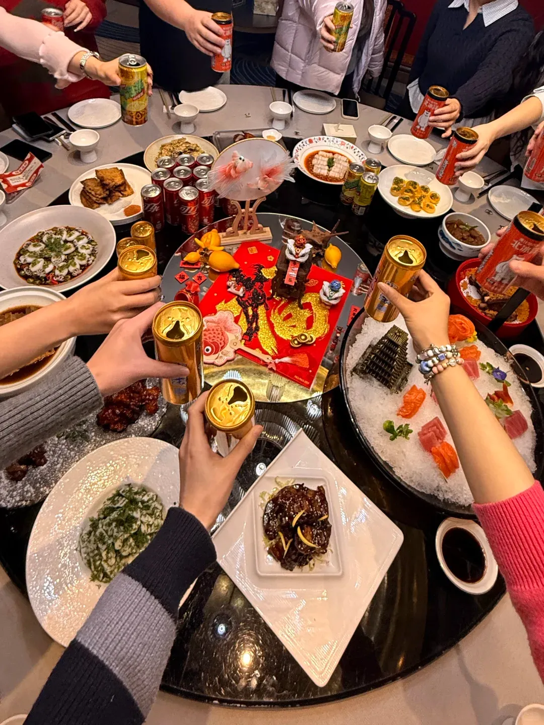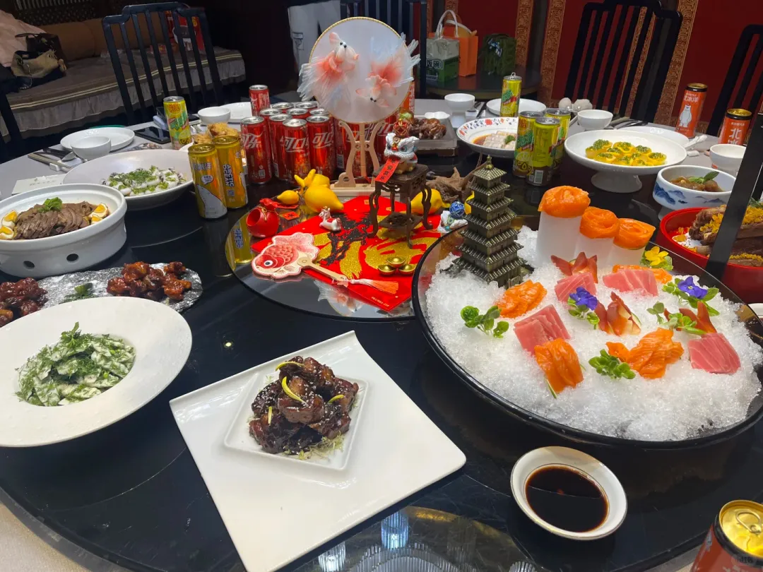 真的很有意思哈哈哈哈,有准备霸王茶姬和必胜客的小食等等,节目也很多,公司准备的加上歌手唱的,总共4个多小时,最后的DJ真的嗨起来啦。菜也非常硬,还有刺身。