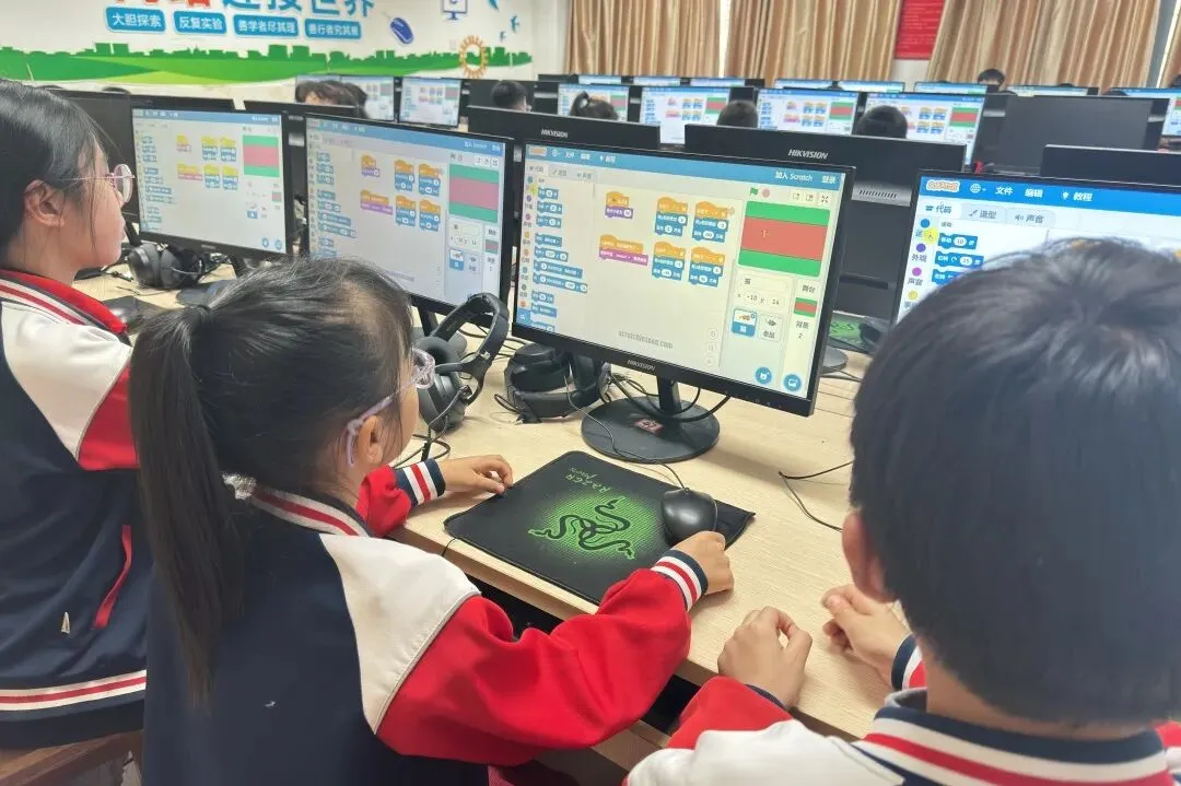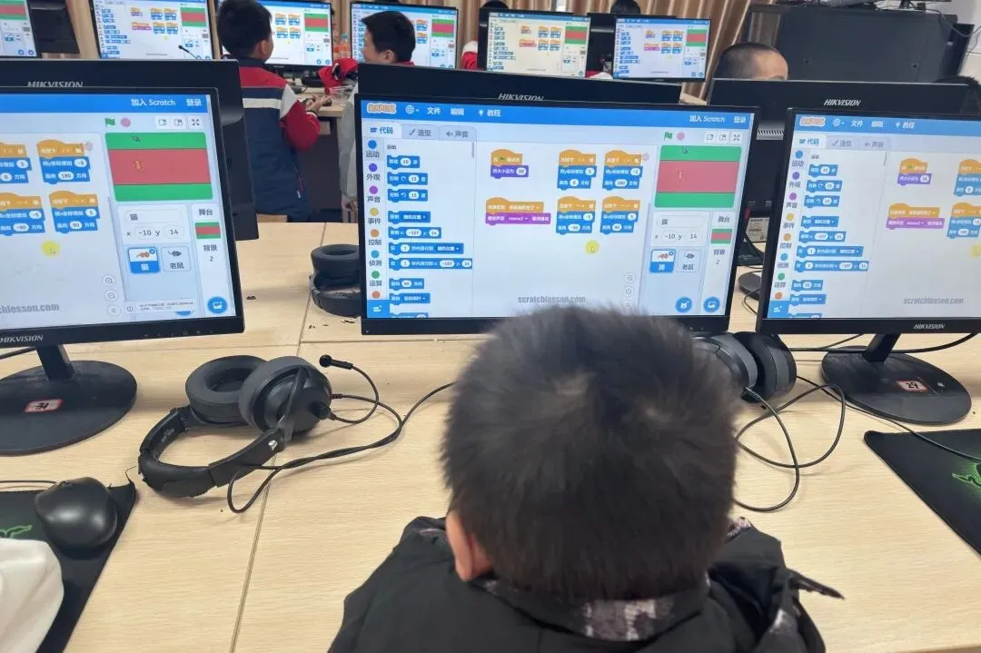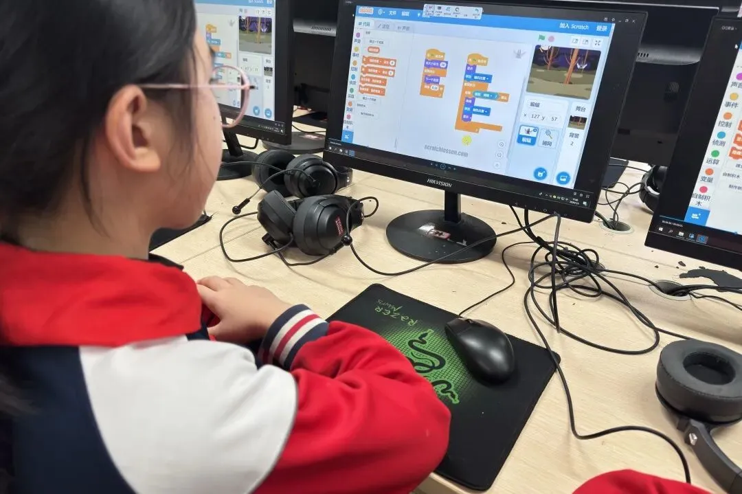 当 Scratch 充满魔力的界面第一次点亮教室屏幕,当孩子们的小指尖第一次拖动彩色积木块,让屏幕上的小猫迈出灵动一步,一场关于逻辑、创造与成长的编程奇妙旅程,便悄然拉开了序幕。过去一学期,南门中特小学复兴少年宫图形化编程兴趣班的教室里,始终回荡着调试成功的欢呼、伙伴协作的欢声笑语,更凝聚着孩子们面对难题时不肯放弃的执着。从最初对着界面的懵懂好奇,到如今能独立设计趣味游戏、创作互动动画,孩子们用一块块小小的编程积木,搭建出了属于自己的数字宇宙,让创意在代码世界里自由绽放。