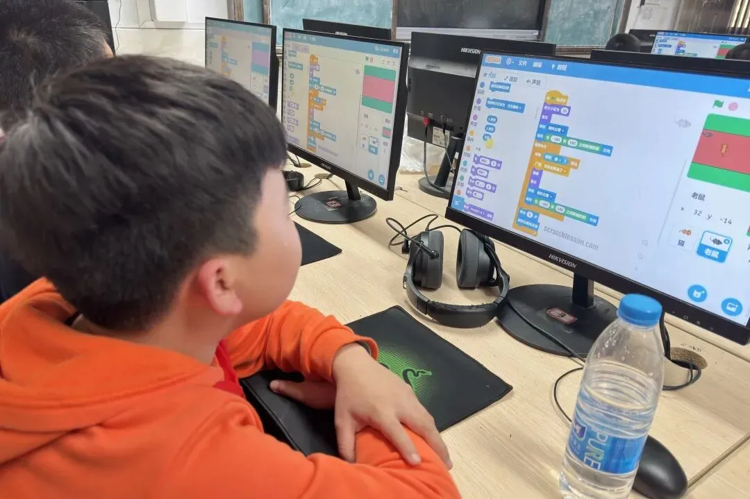 课程伊始,我们从 Scratch 的下载安装起步,带着孩子们一点点解锁这个编程工具的奥秘。大家从认识舞台与角色开始,学会导入心仪的角色形象,用 “移动”“旋转” 等基础积木,让小猫在舞台上精准穿梭,完成了入门级的 “猫捉老鼠” 趣味任务。当屏幕上的小猫第一次乖乖听从指令,做出预设动作时,孩子们眼里闪烁的惊喜光芒,正是编程兴趣生根发芽的起点。
