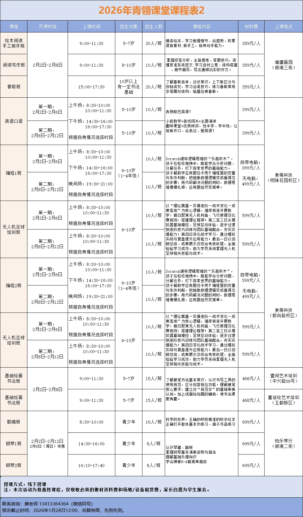 青翎课堂寒假普惠兴趣班开启后反响热烈,多个班级已满员,仅剩少量名额。