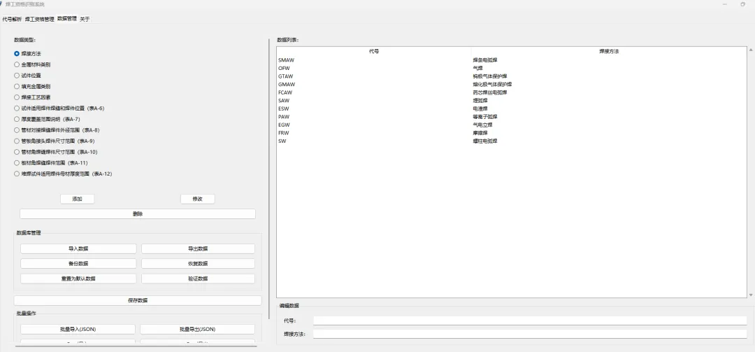 1. 数据导入 :从Excel导入现有焊工资格数据