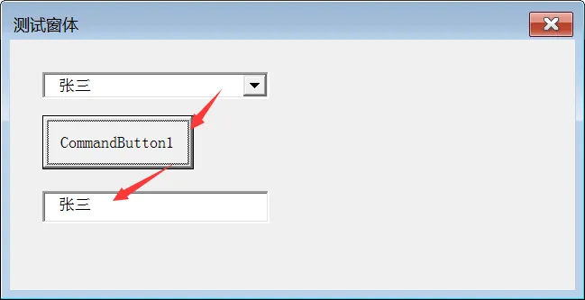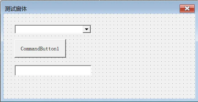 新建frmTest1窗体,添加一个复合框,设置Style属性为2-fmStyleDropDownList;添加按钮CommandButton1和文本框TextBox1,结果如下图所示。
