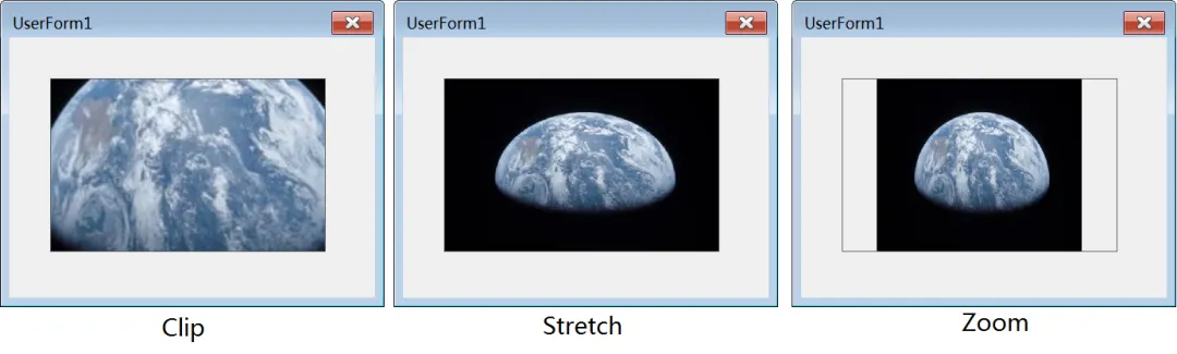 值0-frmPictureSizeModeClip,默认值,大于控件尺寸的部分会被裁剪。