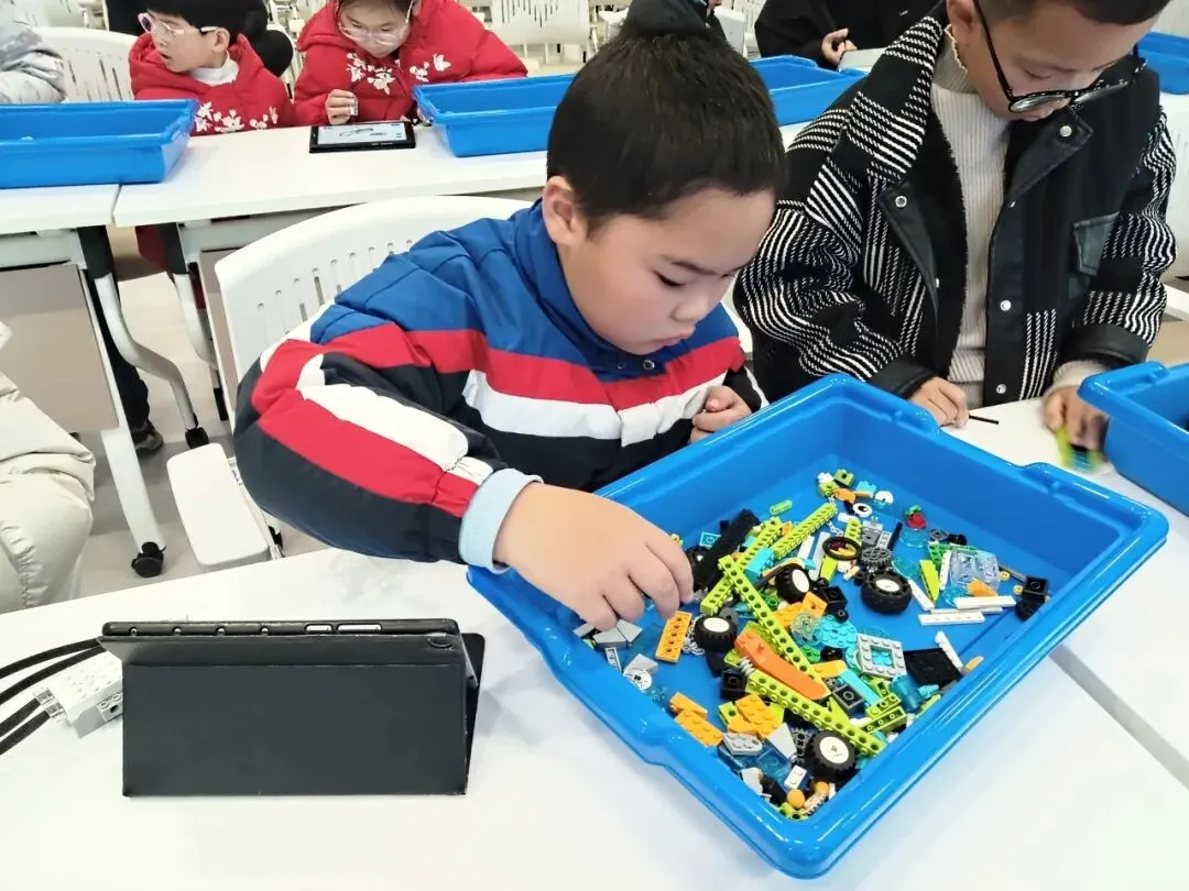 沉浸在探索的乐趣中,孩子们反复调试、持续突破,每一次小小的成功都让现场洋溢着喜悦与成就感。